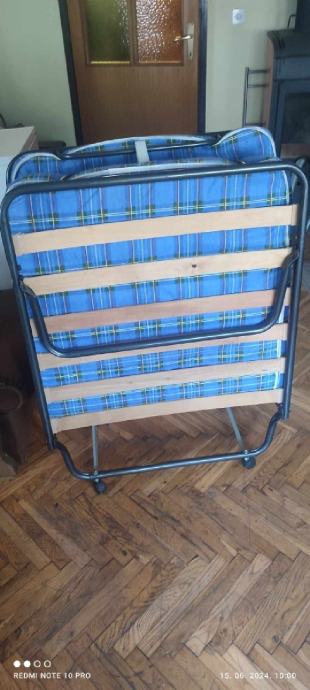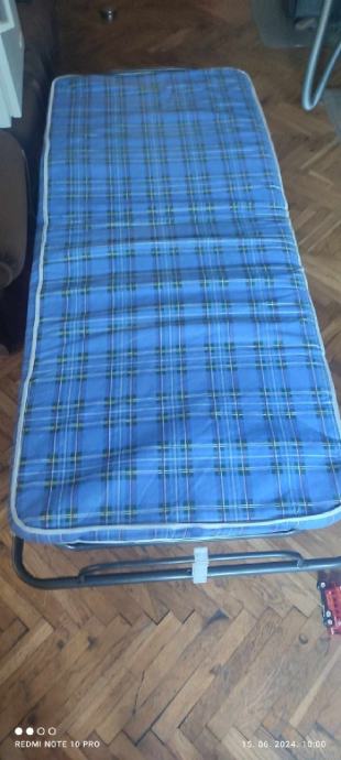 Ispravan sklopivi krevet sa madracem. Krevet je izrađen od čeličnih cijevi.