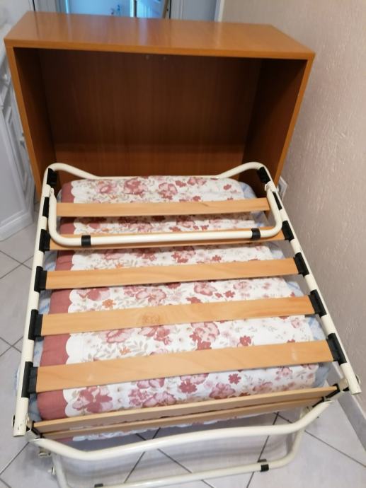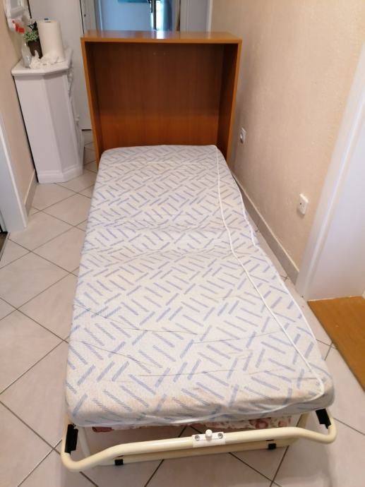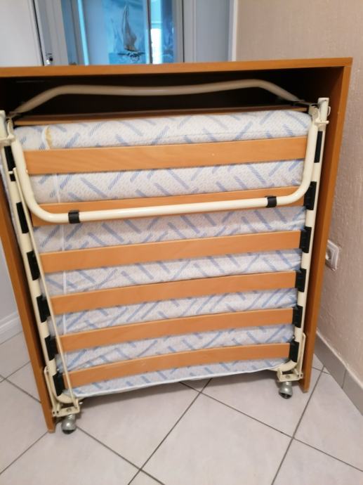 Prodajem sklopivi prijenosni krevet dimenzija 190 x 80 cm s madracem. Vrlo praktično rješenje za mali prostor jer se krevet kad se ne koristi sklopi u ormar na kotačićima.