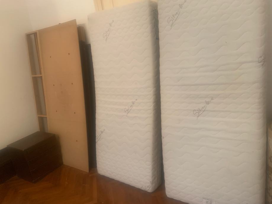 Prodajem Namjestaj za spavaću sobu, kreveti , ormariči, madraci 160 x200 x 20 cm, most nad uzglavljem, podnice sve kao na slici, ispravno bez oštečenja, .Namjetaj rastavljen.navlake na madracima se mogu skidati za pranje.