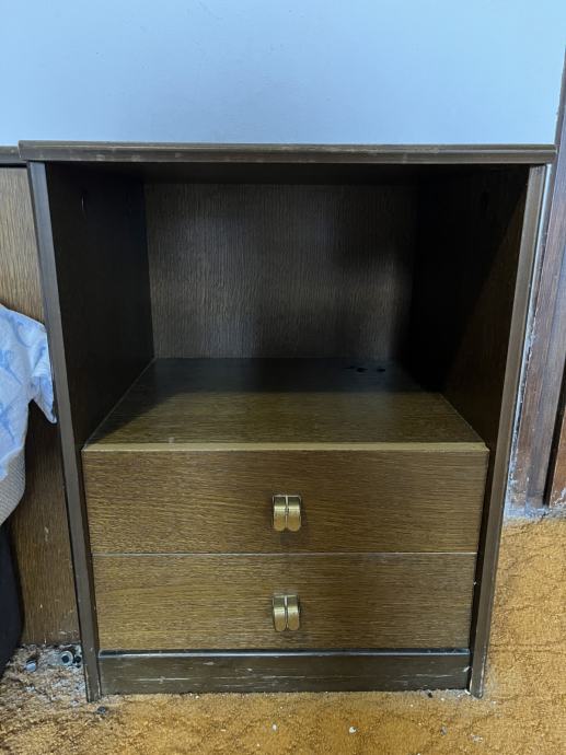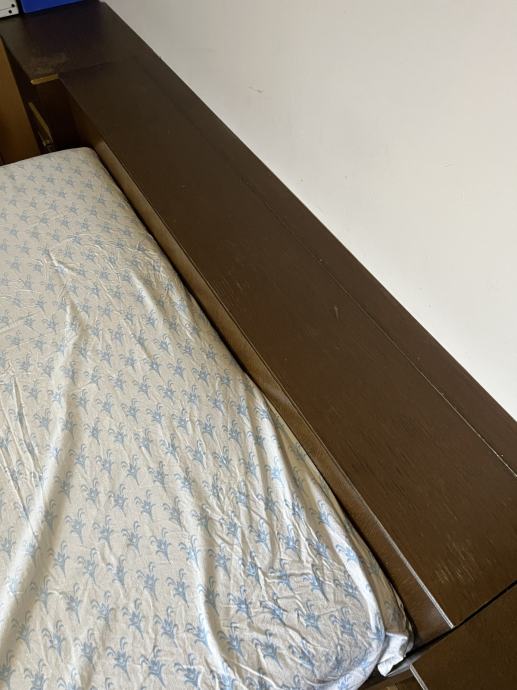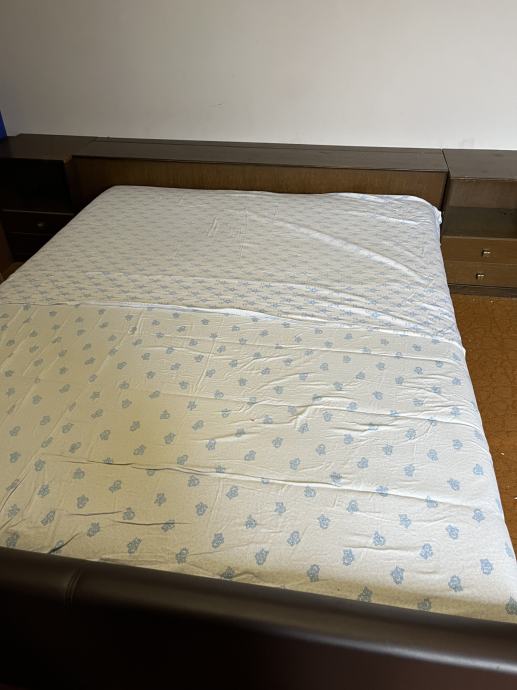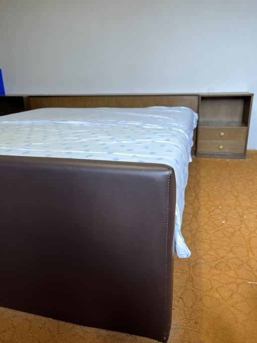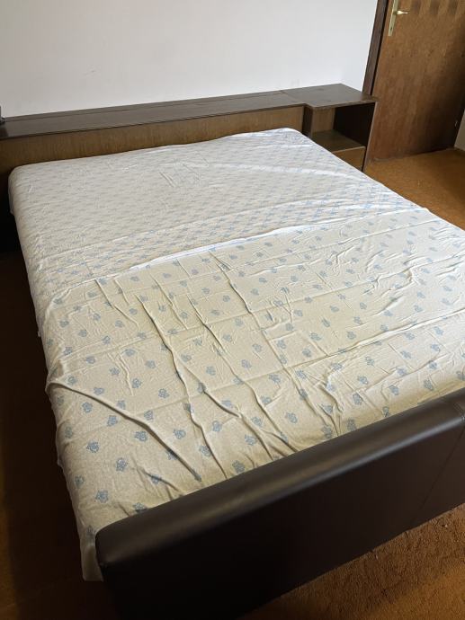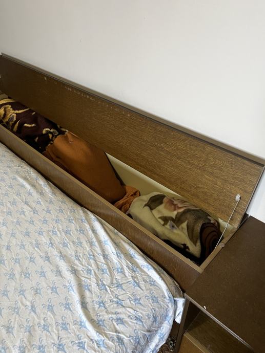 Bračni krevet sa uzglavljem koje je ujedno i spremište te sa dva noćna ormarića - puno drvo.
