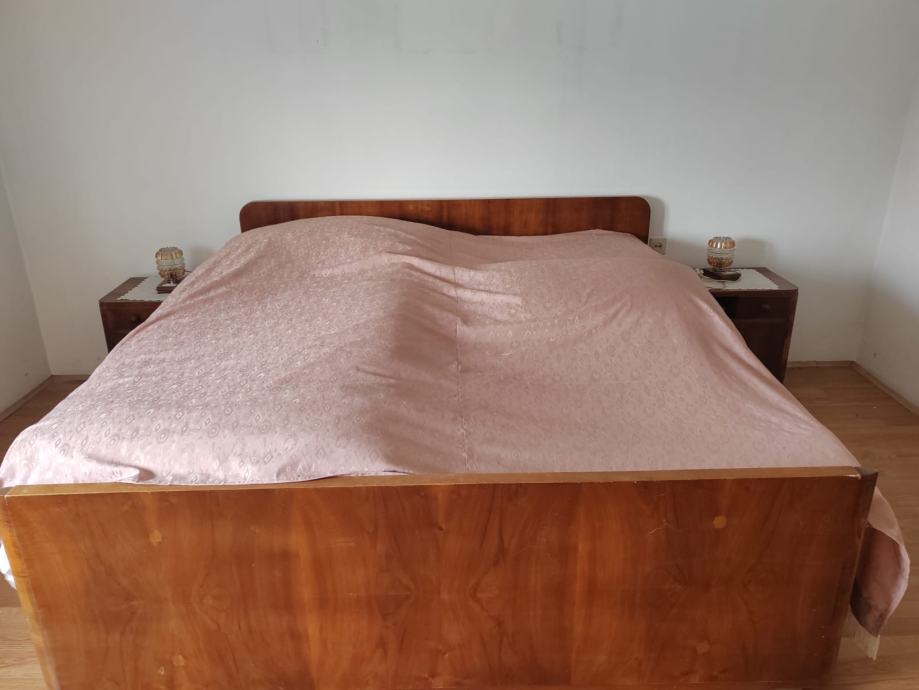 Starinski bračni krevet s noćnim ormaricima. Cijena je za komplet.