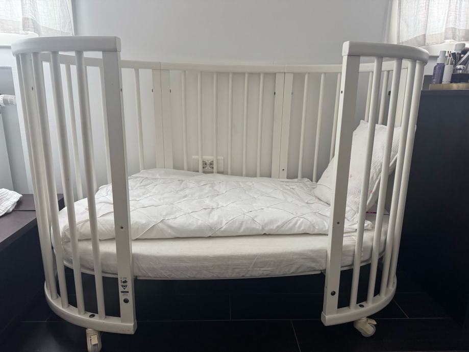 Prodajem Stokke krevetić u bijeloj boji. Radi se o prepoznatljivom ovalnom dizajnu koji je karakterističan za Stokke, s drvenim letvicama i kotačićima za lakše premještanje. Uz krevetić dolazi i madrac.