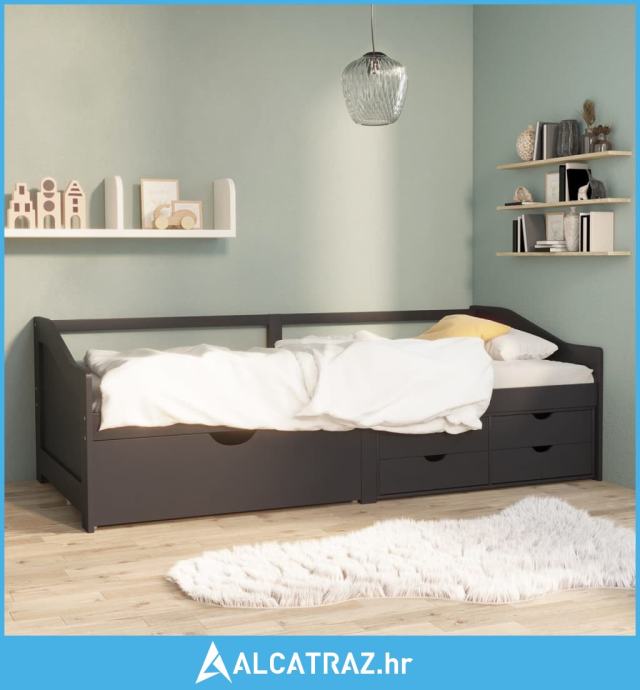 Trosjed/ležaj s ladicama sivi 90 x 200 cm od masivne borovine - NOVO