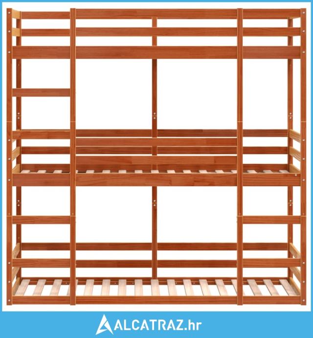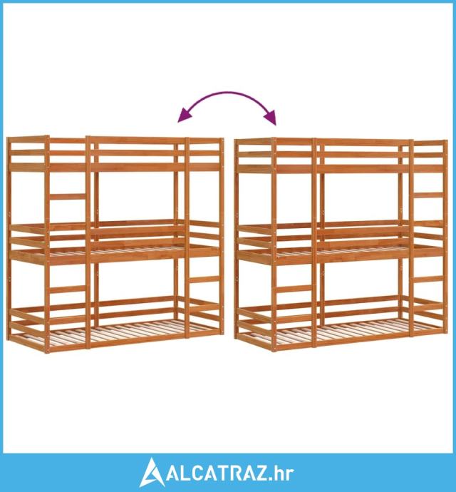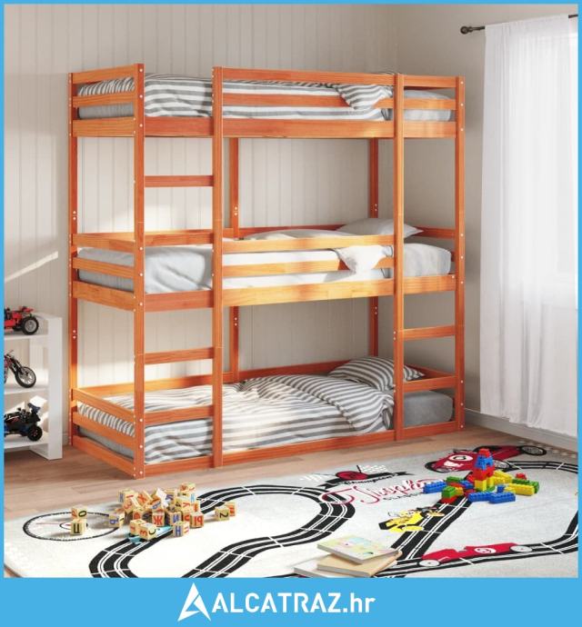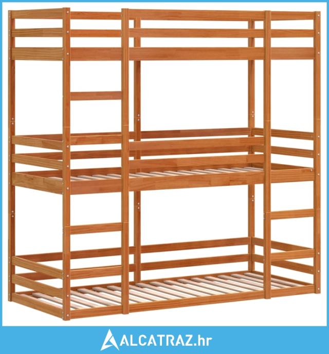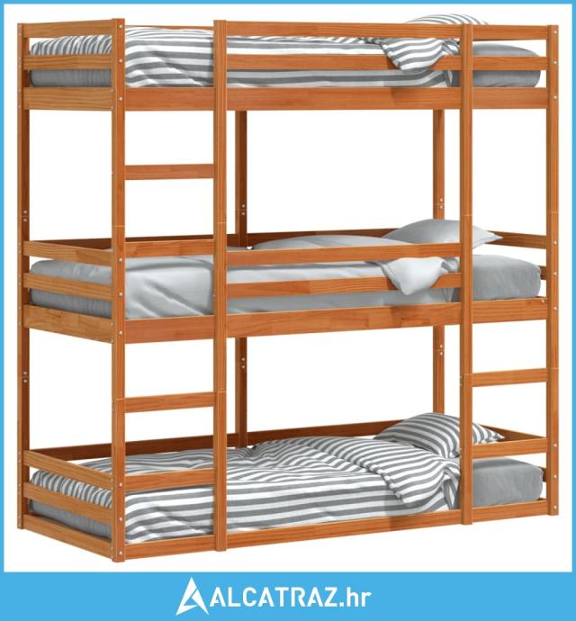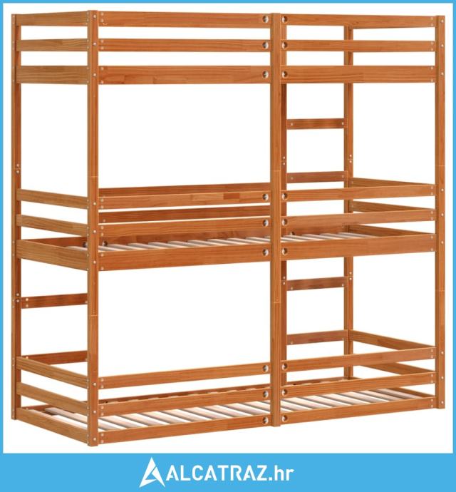 Trostruki krevet na kat voštano smeđi 75 x 190 cm borovina - NOVO