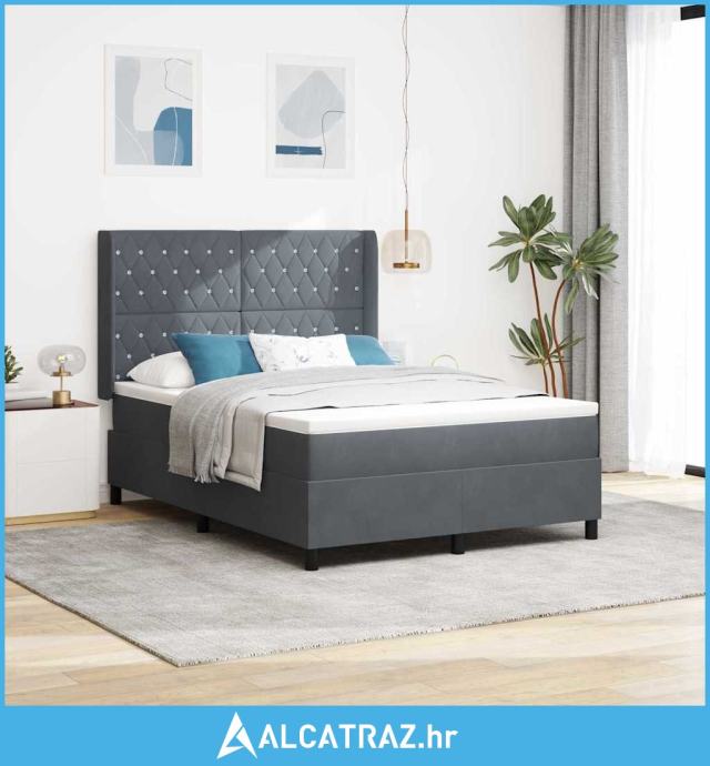 Tvrdi madrac s vlastitim okvirima tamno sivi 140x190 cm baršun - NOVO