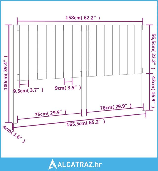 Uzglavlje za krevet 165,5 x 4 x 100 cm od masivne borovine - NOVO