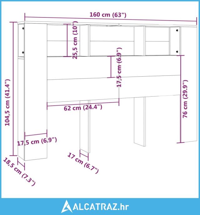 Uzglavlje s ormarićem boja hrasta sonome 160x18,5x104,5 cm - NOVO
