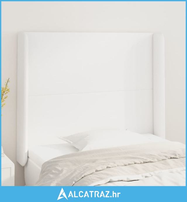 Uzglavlje s ušima bijelo 93x16x118/128 cm od umjetne kože - NOVO