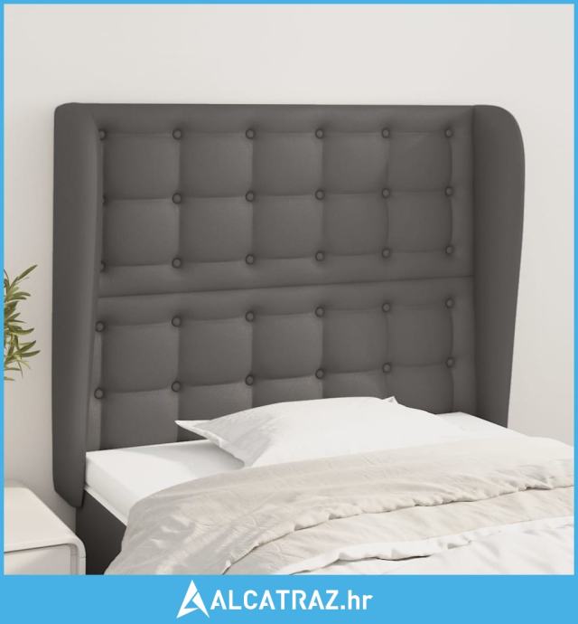 Uzglavlje s ušima sivo 83 x 23 x 118/128 cm od umjetne kože - NOVO