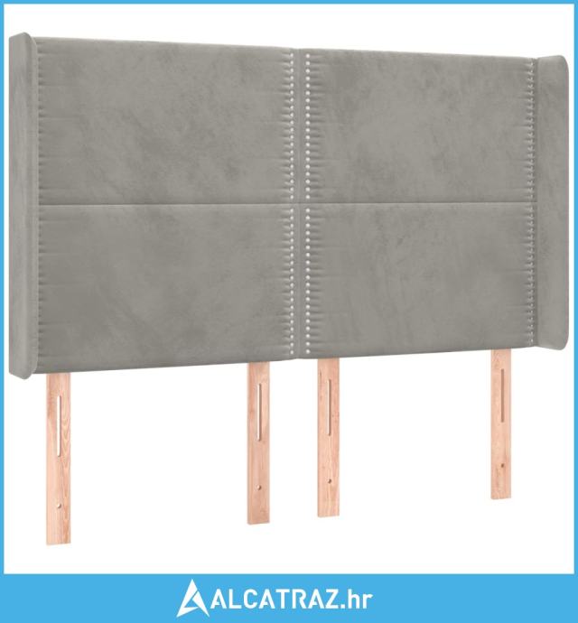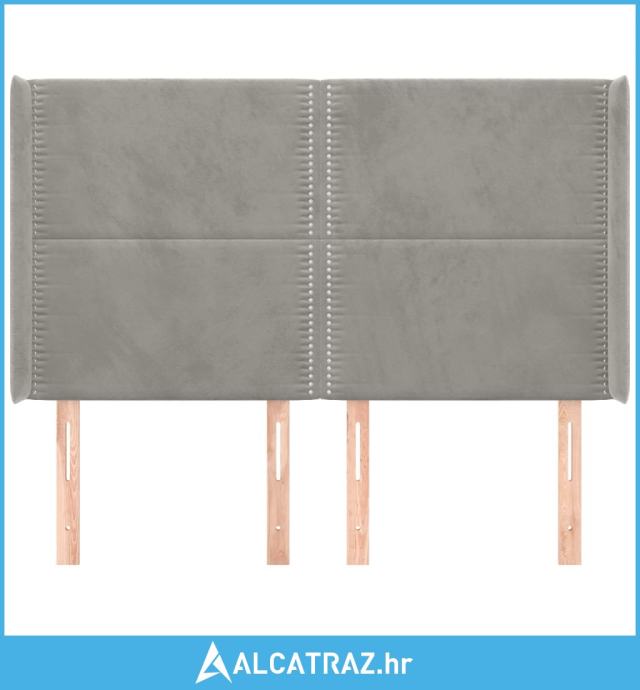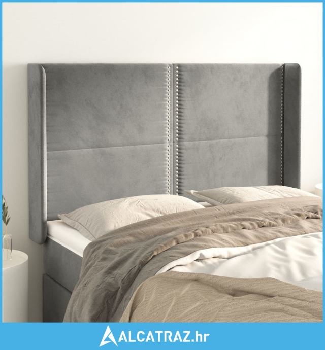 Uzglavlje s ušima svjetlosivo 147x16x118/128 cm baršunasto - NOVO