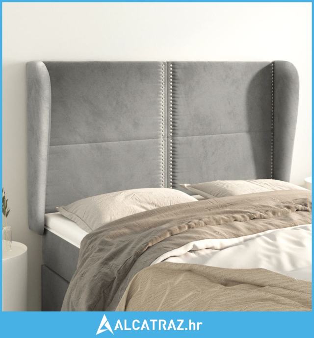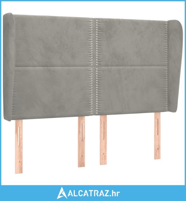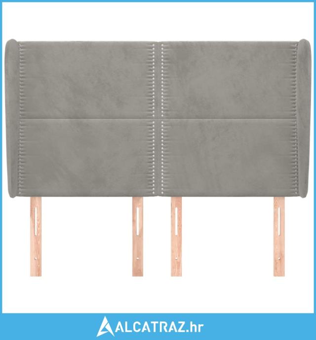Uzglavlje s ušima svjetlosivo 147x23x118/128 cm baršunasto - NOVO
