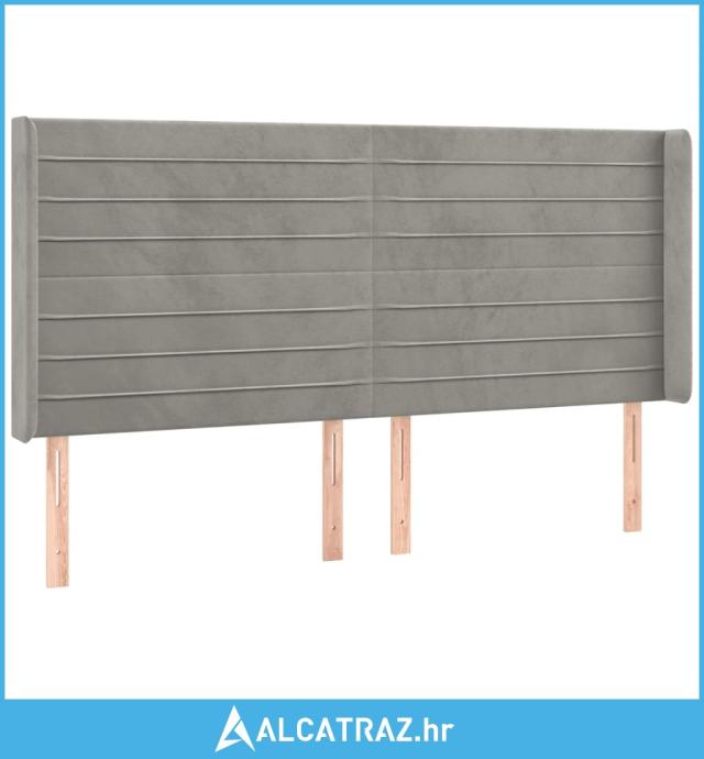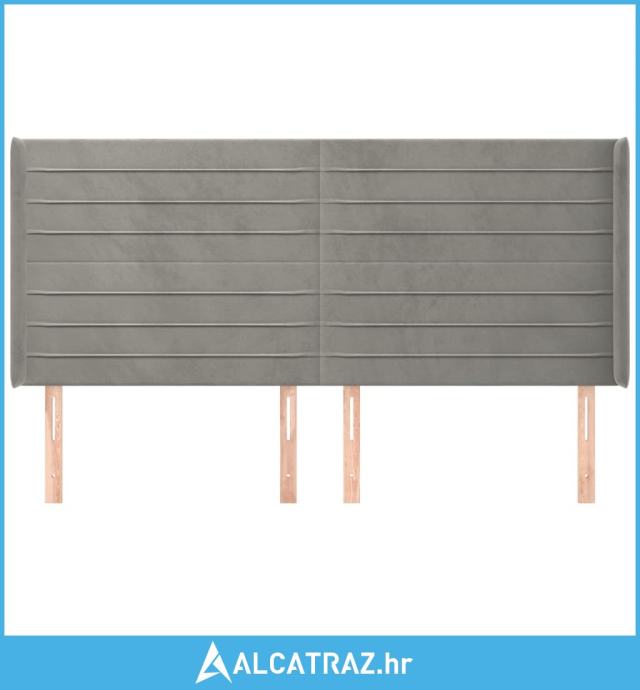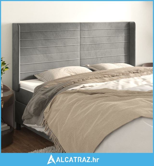 Uzglavlje s ušima svjetlosivo 183x16x118/128 cm baršunasto - NOVO