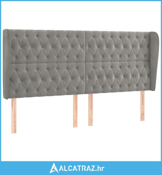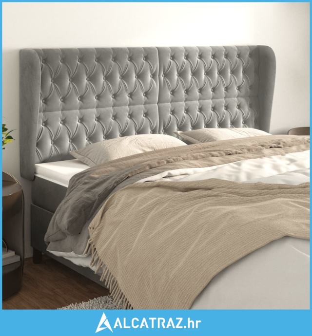 Uzglavlje s ušima svjetlosivo 203x23x118/128 cm baršunasto - NOVO