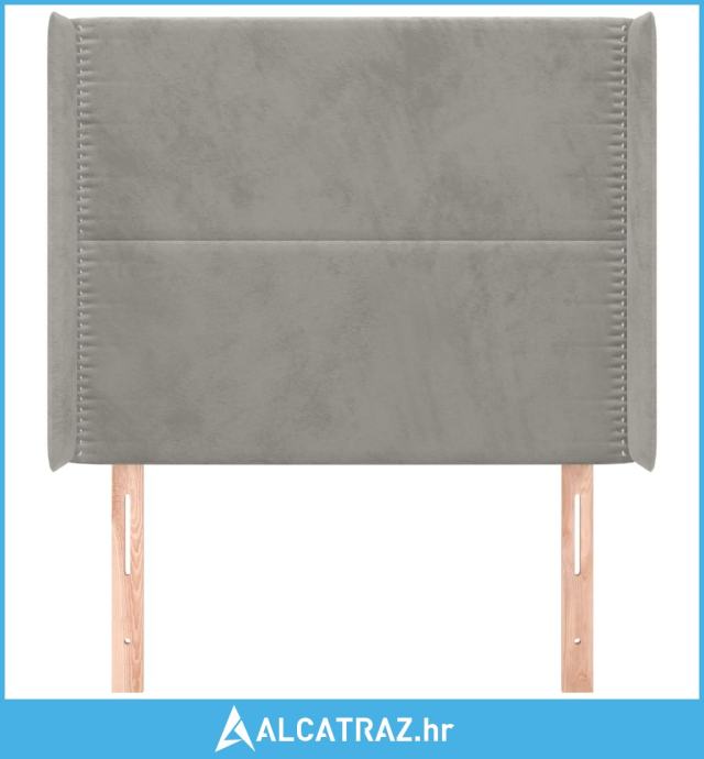 Uzglavlje s ušima svjetlosivo 93x16x118/128 cm baršunasto - NOVO