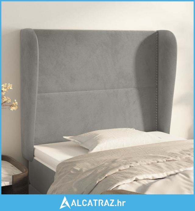 Uzglavlje s ušima svjetlosivo 93x23x118/128 cm baršunasto - NOVO