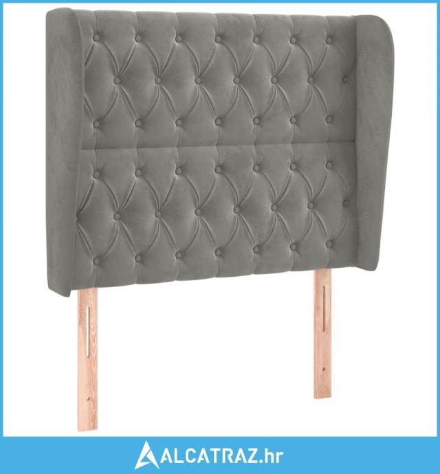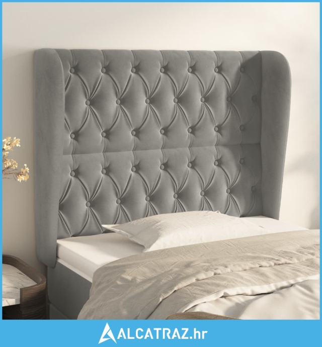 Uzglavlje s ušima svjetlosivo 93x23x118/128 cm baršunasto - NOVO