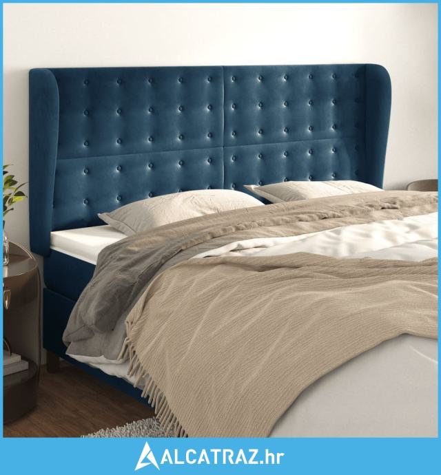Uzglavlje s ušima tamnoplavo 183x23x118/128 cm baršunasto - NOVO