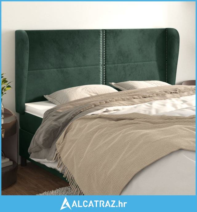 Uzglavlje s ušima tamnozeleno 183x23x118/128 cm baršunasto - NOVO
