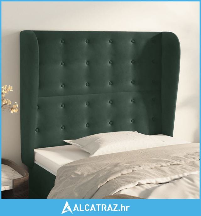 Uzglavlje s ušima tamnozeleno 93x23x118/128 cm baršunasto - NOVO