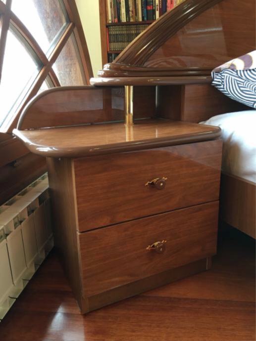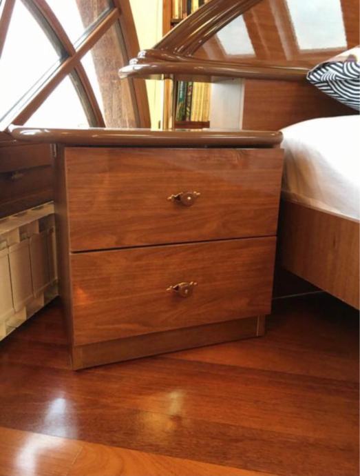 Bračni krevet s dva noćna ormarića, podnicom i gotovo novim Hespo madracem.