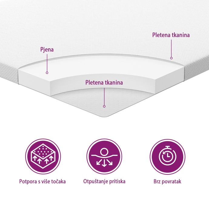 Jednostavan nadmadrac: perivi, prozračni nadmadrac ima vrlo dobre karakteristike poput izvrsne cirkulacije zraka i kontrole temperature, zbog čega čini kožu svježom i zdravom.