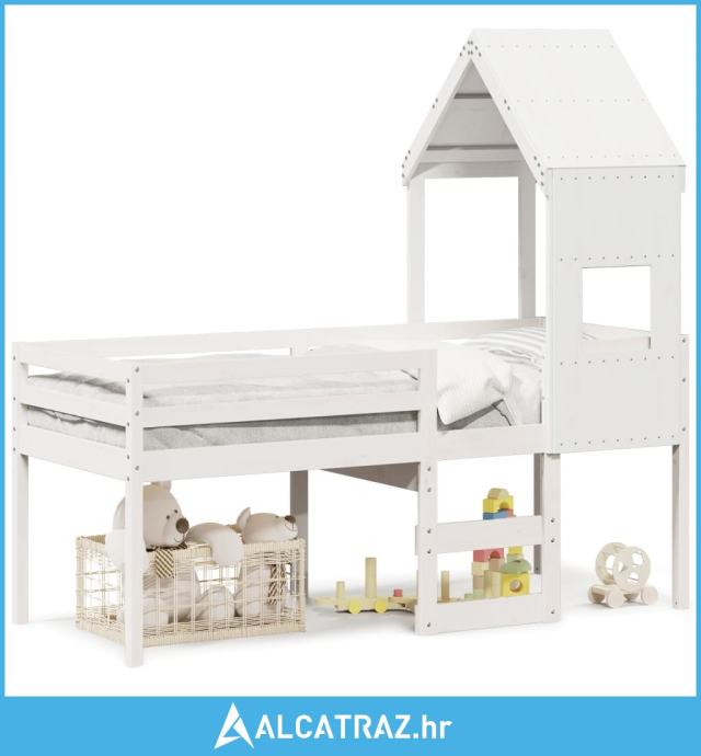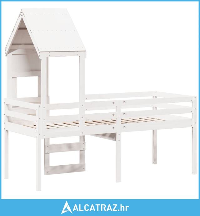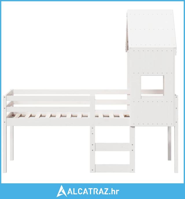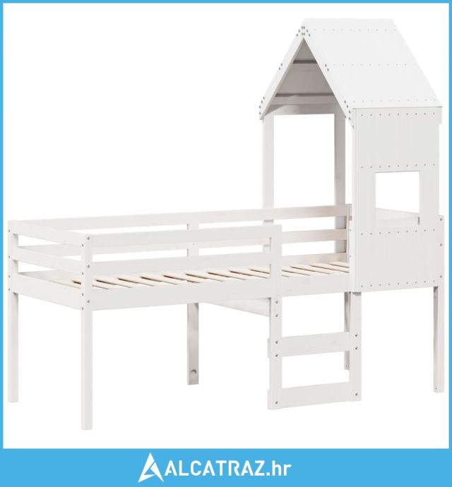 Visoki krevet s krovom bijeli 90 x 190 cm od masivne borovine - NOVO