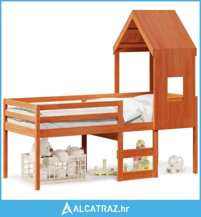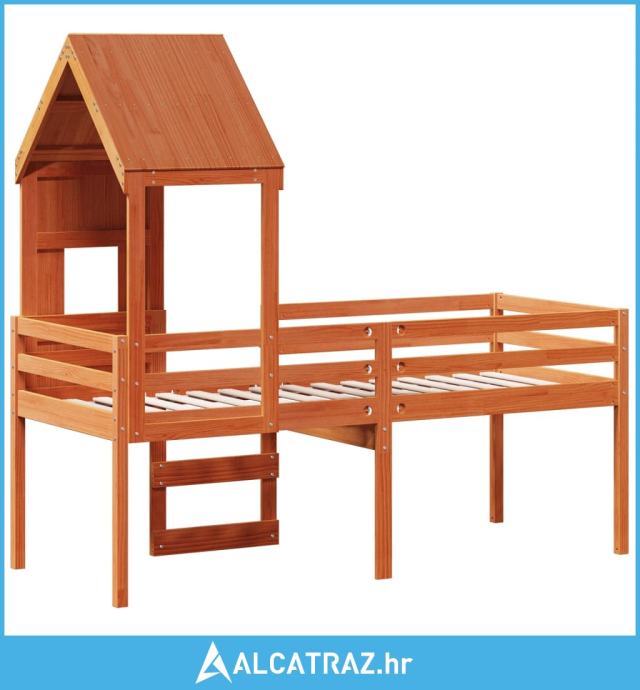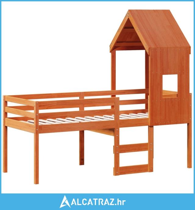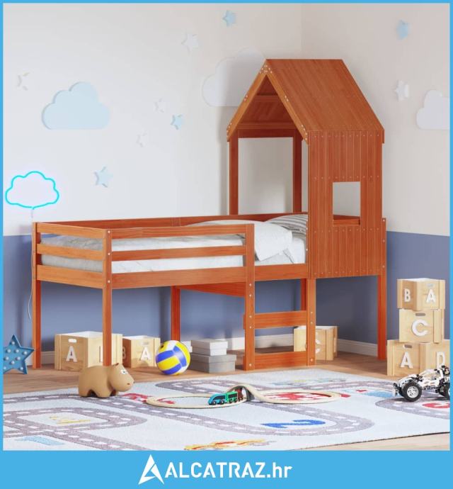 Visoki krevet s krovom voštano smeđi 80x200 cm masivna borovina - NOVO