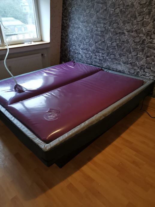 Vodeni krevet sa dva madraca. Uključeni grijači sa podesivom temperaturom, presvlaka za zaštitu od poplave i gornja periva navlaka.