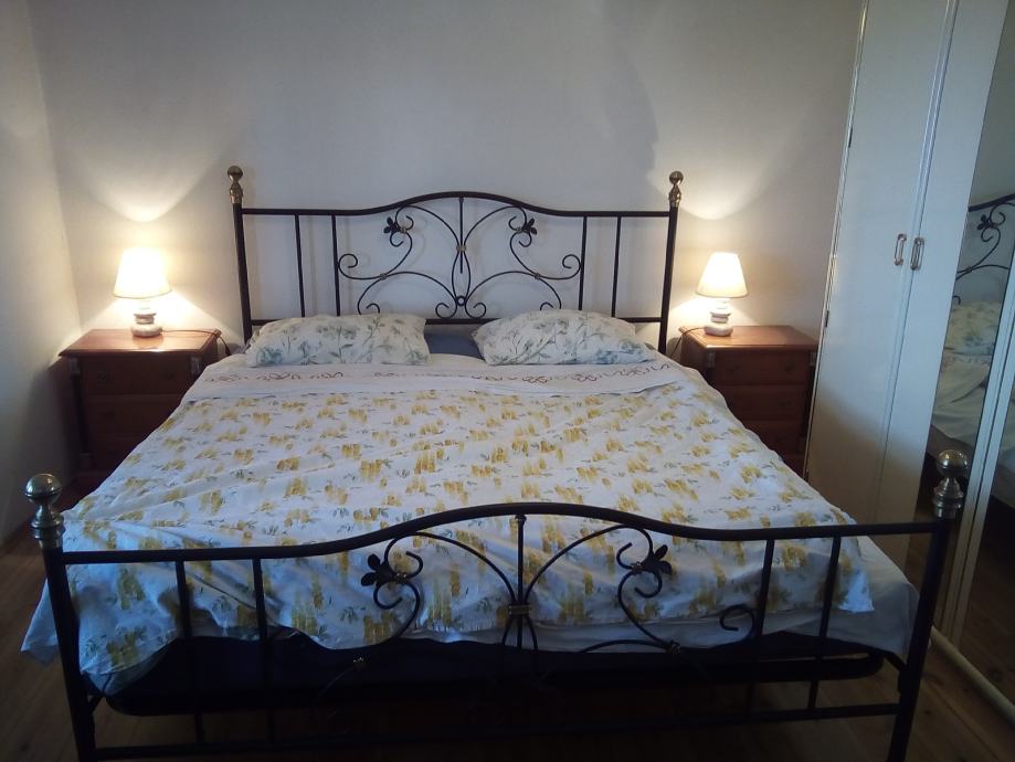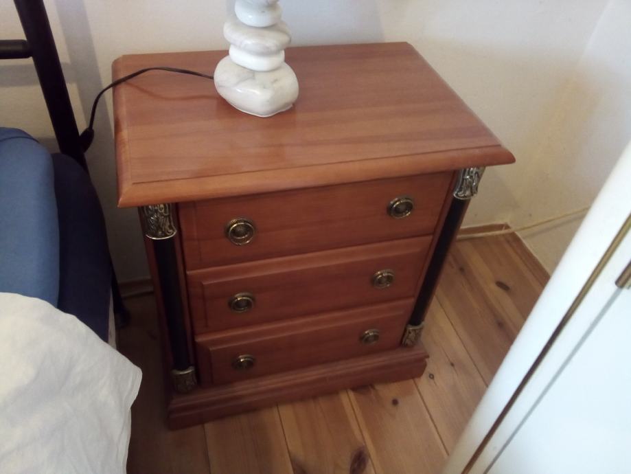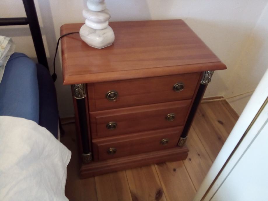 Prekrasan željeni krevet s podnicom od drvenih letvica sa mogućnošću stavljanja 2 madraca D/200cm i Šire/90cm. Gornja i doljnja stranica prekrasno ukrašeno cvjetnim detaljima. Osim što je neuništiv i lako se može rastaviti i sastaviti, nema troškova održavanja. Tu su 2 noćna ormarića koji imaju dijelove dizajna povezanim s dizajnom kreveta pa tako predstavljaju komplet, koji je uvezen iz Španjolske.Ormarići su D/55/Š/35/V60 cm. Cjena kompleta je 1200,-Eura uz dogovor.Zvati na mob. 091/8880721