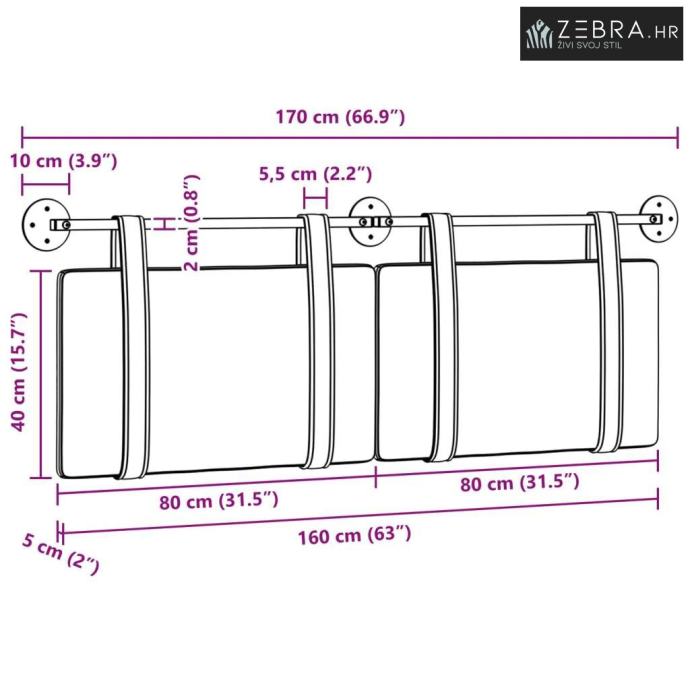 Veličina paneli za glavu: 80 x 40 x 5 cm (š x dub x v)