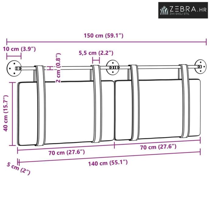 Veličina paneli za glavu: 140 x 40 x 5 cm (š x D x v)