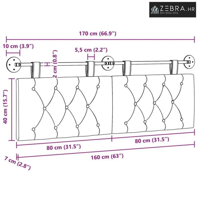 Veličina paneli za glavu: 80 x 40 x 7 cm (š x D x v)