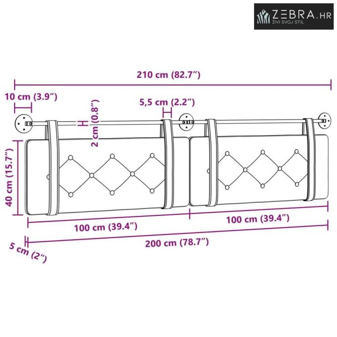 Veličina paneli za glavu: 100 x 40 x 5 cm (š x dub x v)