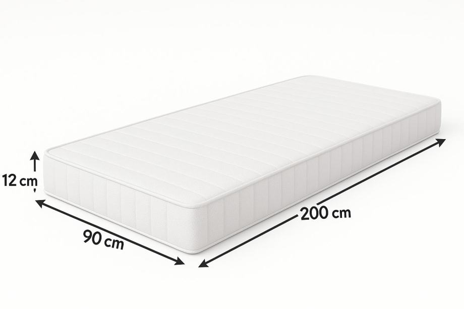 Madrac od memorijske pjene 90x200 cm s jezgrom od polieterske pjene.