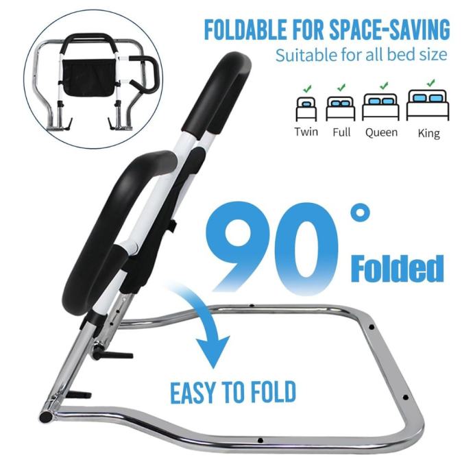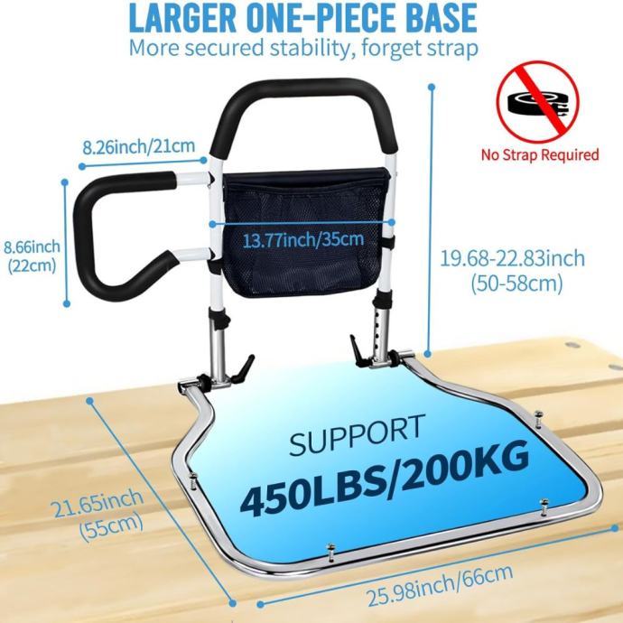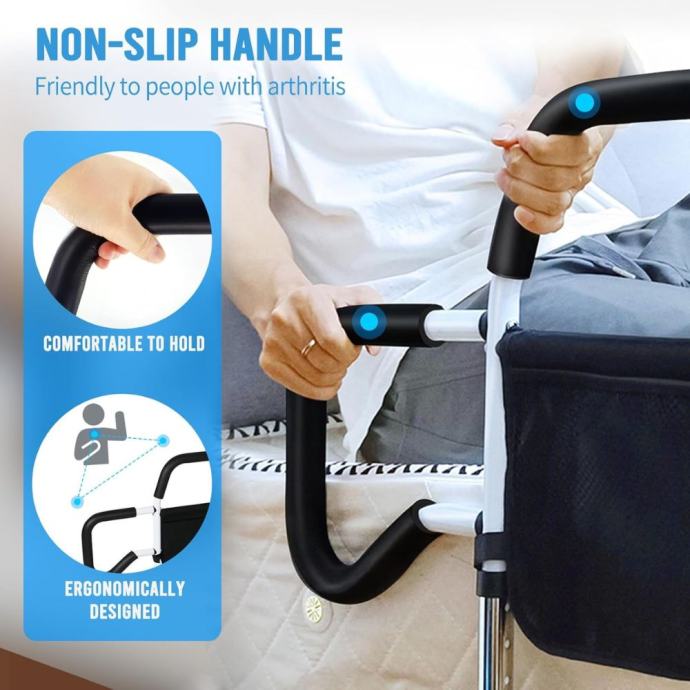 Robusna čelična konstrukcija: Izrađena od ojačanog ugljičnog čelika, ova ručka može podnijeti težinu do 200 kg. Dizajnirana je da pomogne vašoj voljenoj osobi da izbjegne padove i podrži ih pri ulasku i izlasku iz kreveta.