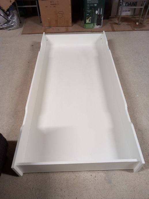 Sanduk za posteljinu na kotacicima za lagano izvlacenje, duzine 200cm, sirine 94cm i visine 23cm. Vrlo ocuvano i cvrsto sa cvrstom podnicom (iverica a ne lesonit)