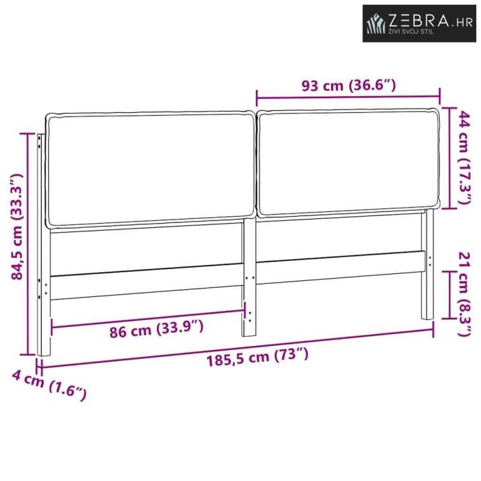 Sveukupne dimenzije: 185,5 x 12 x 84,5 cm (D x Š x V)