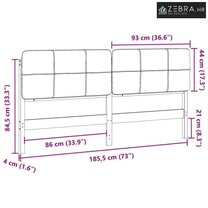Sveukupne dimenzije: 185,5 x 12 x 84,5 cm (D x Š x V)