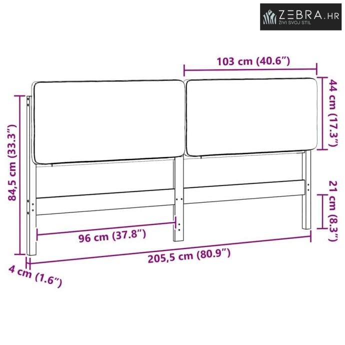 Sveukupne dimenzije: 205,5 x 12 x 84,5 cm (D x Š x V)