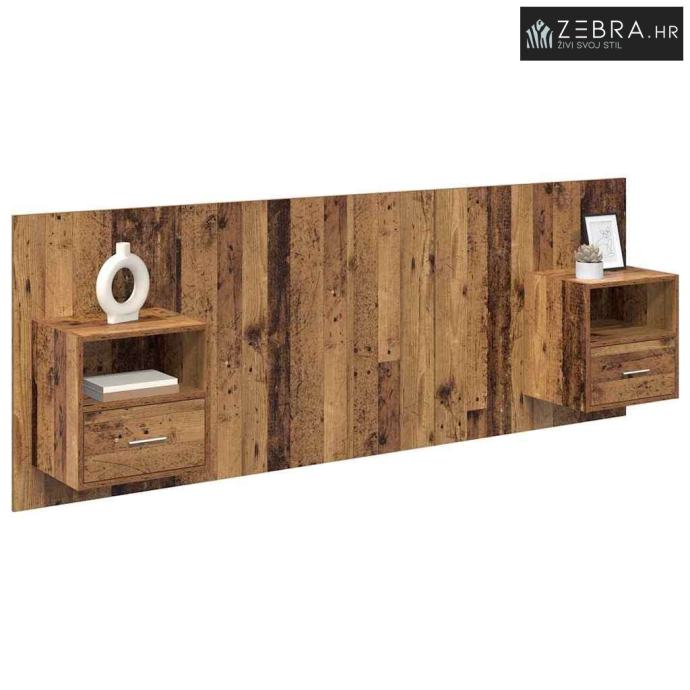 Uzglavlje s ormarićem Zidne 3 pcs Staro drvo Konstruirano drvo
