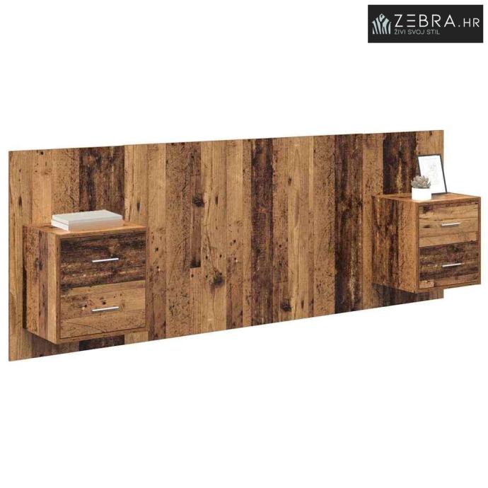 Uzglavlje s ormarićem Zidne 3 pcs Staro drvo Konstruirano drvo