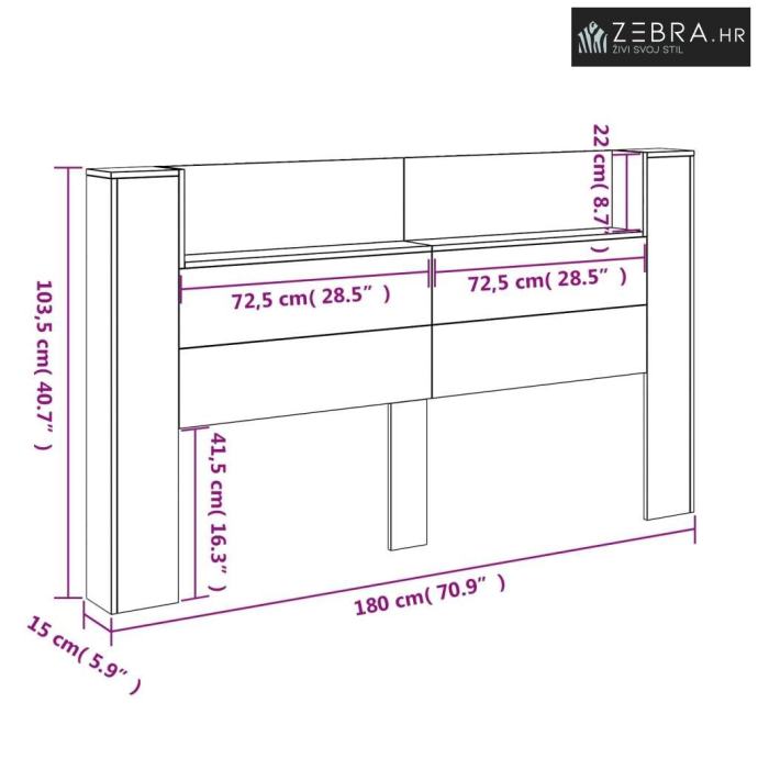 Ova moderna uzglavna ploča s LED-om pravi je inovativan dodatak svakoj suvremenoj spavaćoj sobi, spajajući estetiku i funkcionalnost. Sa svojim elegantnim, čistim linijama i ugrađenim LED osvjetljenjem, dodaje dašak elegancije i ambijentalnog svjetla, savršena je za čitanje ili stvaranje opuštajuće atmosfere. Izrađena je u potpunosti od konstruiranog drveta, kombinira snagu i moderni stil, služeći kao središnji komad u vašoj spavaćoj sobi. Idealna je za one koji cijene organizirani i dobro osvijetljeni prostor, zadovoljavajući i estetske i funkcionalne potrebe.