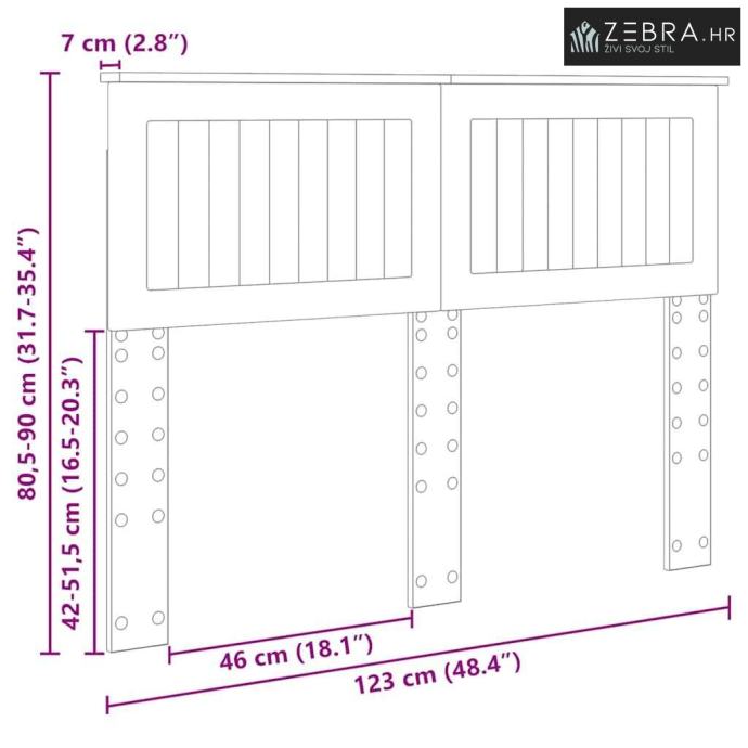 Konstrukcija od konstruiranog drveta: Ovaj uzglavlje napravljeno je od konstruiranog drveta, pružajući čvrstu i izdržljivu strukturu koja će trajati. Materijal je odabran zbog svoje otpornosti i dugotrajnosti, savršeno za svakodnevnu upotrebu.