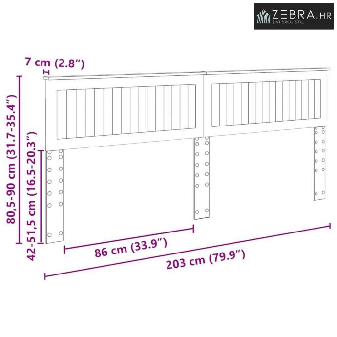 Konstrukcija od konstruiranog drveta: Ovaj uzglavlje napravljeno je od konstruiranog drveta, pružajući čvrstu i izdržljivu strukturu koja će trajati. Materijal je odabran zbog svoje otpornosti i dugotrajnosti, savršeno za svakodnevnu upotrebu.