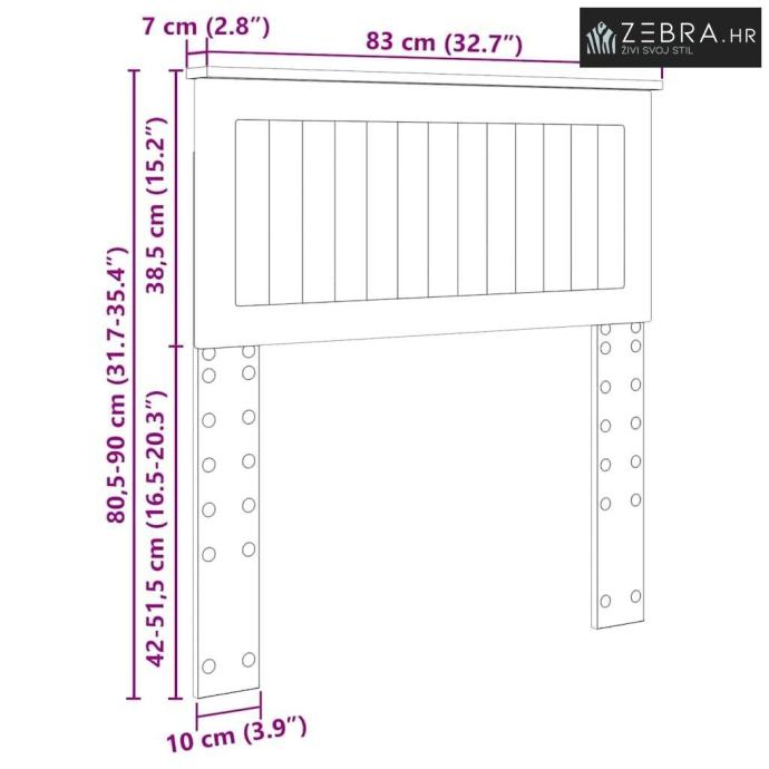Konstrukcija od konstruiranog drveta: Ovaj uzglavlje napravljeno je od konstruiranog drveta, pružajući čvrstu i izdržljivu strukturu koja će trajati. Materijal je odabran zbog svoje otpornosti i dugotrajnosti, savršeno za svakodnevnu upotrebu.