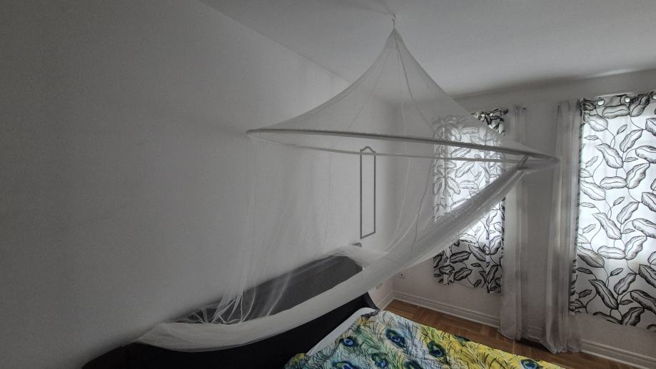 Veliki baldehin s držačem i zavjesom, Ikea, promjer 150 cm za bračni krevet. Potpuno očuvano.