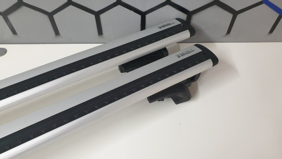 Rabljeni krovni nosači THULE, model Squarebar, za vozila CITROEN C3 Picasso, od 2009 godine dalje. Za vozila sa dignutimi uzdužnimi krovnimi nosači
