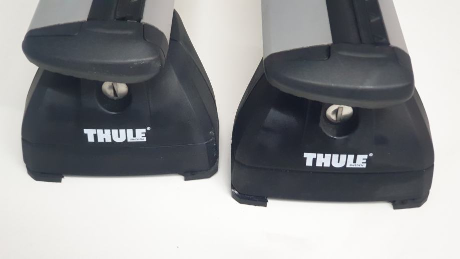 Rabljeni prečni krovni nosači THULE, model Wingbar, za FORD Focus karavan, model MK3, od 2011 do 2018 godine i Mondeo karavan, model MK4, od 2007 do 2014 godine. Za vozila sa integriranimi uzdužnimi korvnimi nosači..