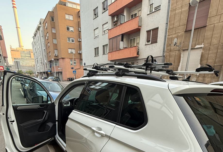 2. Dva krovna nosača za obične bicikle Thule FreeRide 532-2 za manje i veće bicikle. Odlični i pouzdani nosači koji omogućuju visoku brzinu s biciklom na krovu