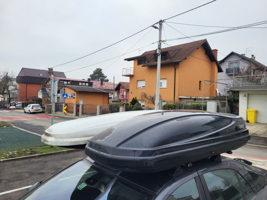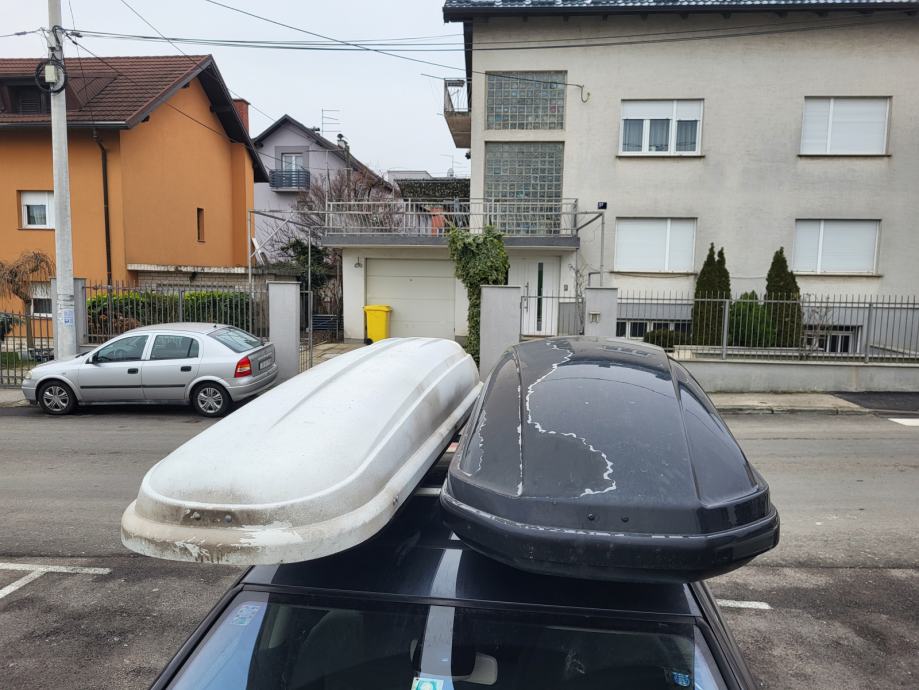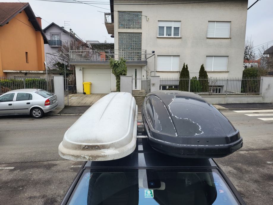 Prodajem navedenu kutiju u očuvanom stanju i potpuno ispravnu! Kutija se otvara na obje strane i ima brzi sistem postavljanja na krovne nosače budući da ima iznutra klješta kojima se kutija pričvršćuje na nosače. Kutija nema nikakvih oštećenja osim što se zbog sunca počeo ljuštiti lak što utječe samo na estetiku, a nikako ne na performanse kutije!